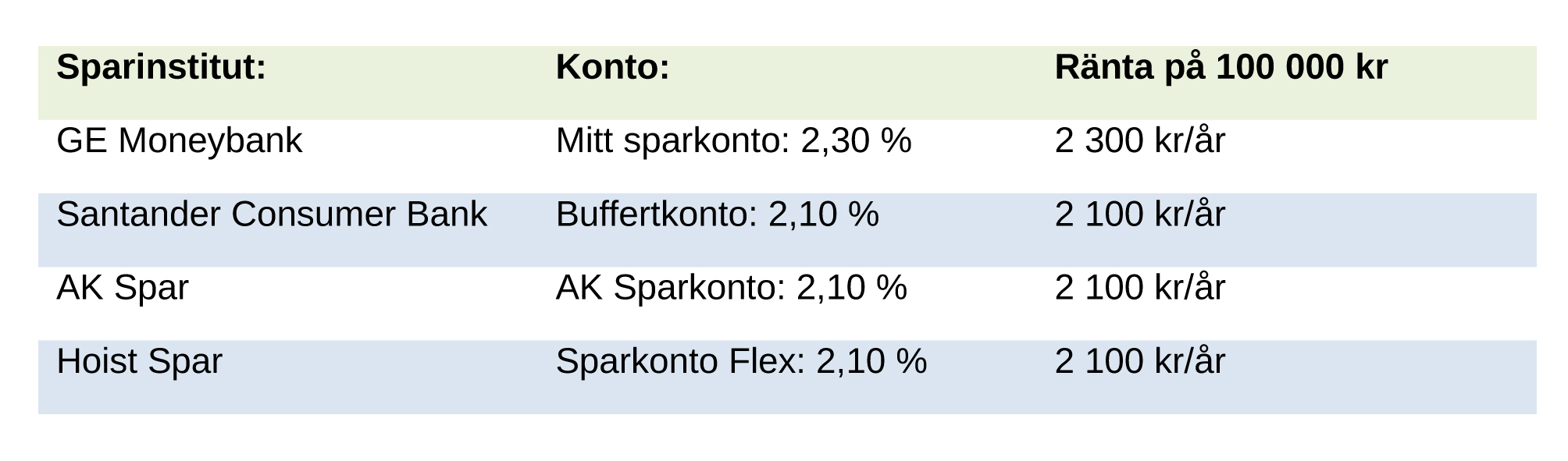 Så här ser storbankernas utbud av icke bundna sparkonton ut: (De har generösare namn än ränta)
