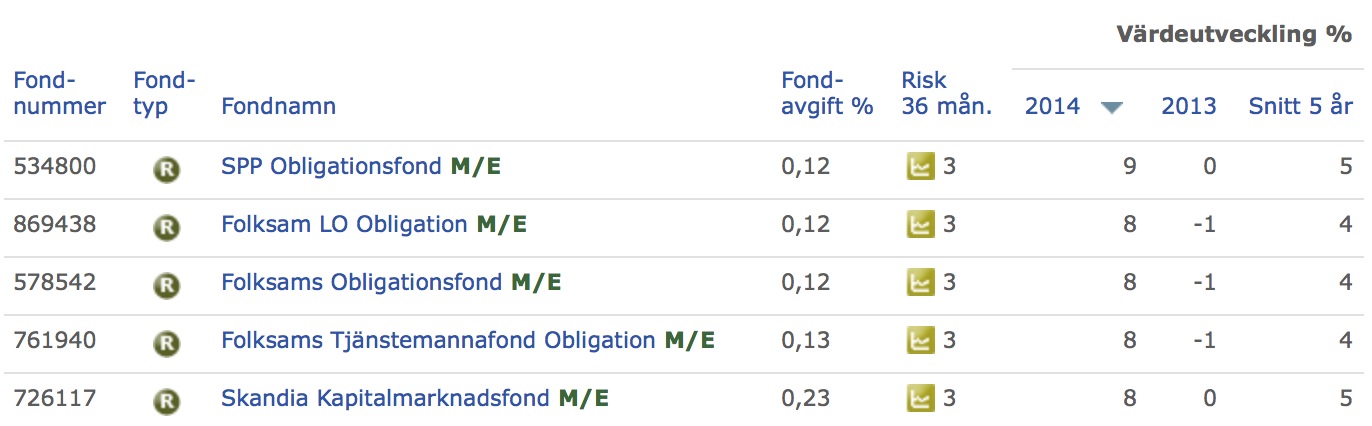 Risknivån för dessa fonder är relativt hög och vill man vara etisk lågriskare kan jag rekommendera följande räntefonder med låga avgifter. Dock bör man vara lite vaksam då vi för närvarande lever i en lågräntemiljö.