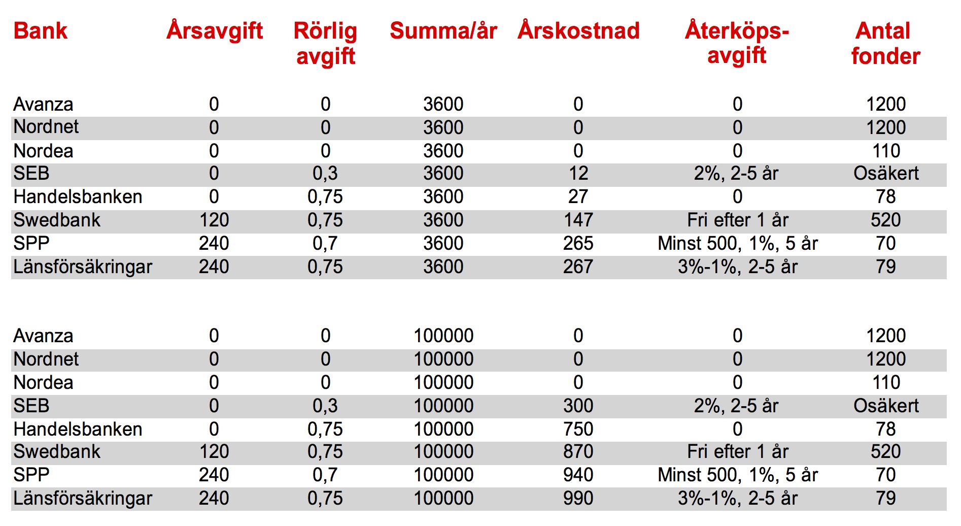- Alla fonder (nästan) tar ut en avgift. Den kallas för förvaltningsavgift och kan vara allt från rimlig till orimlig. Vad som kan anses vara orimligt är lite svårt att bestämma exakt. Det beror på vilken sorts fond det är. (En indexfond bör inte kosta mer än 0,4 %, en aktivt förvaltad aktie bör inte kosta mer än 1 – 1,5 %, en tillväxtmarknadsfond bör inte kosta mer än 1,5 – 2 %) Denna avgift kommer nämligen att gröpa ur din avkastning ganska mycket över tid!