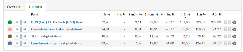 Nedan är exempel på branschfonder som utvecklats mycket bra under lång tid. (Klicka på bilden så visas den i större format)